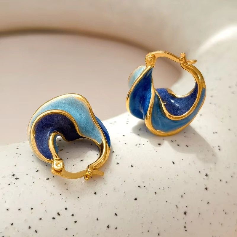 New Blue Oil Drop Spiral Pattern Earrings Elegant High-end French Style Earrings