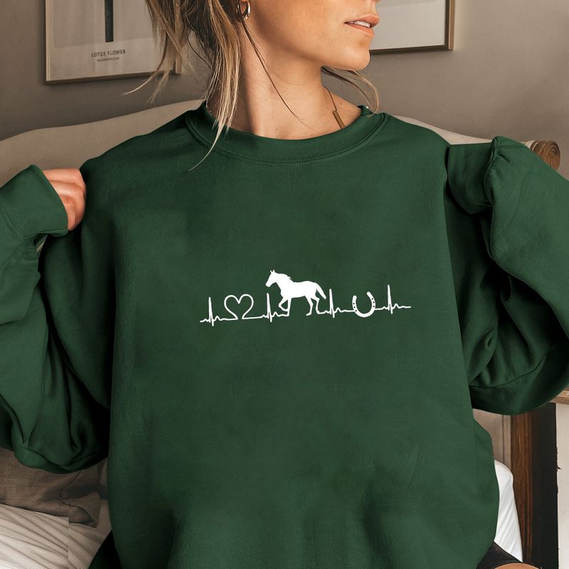 New Sweatshirt Heartbeat Horse Heart Fun Print Sweatshirt Pattern Round Neck Fashion Long Sleeve Top