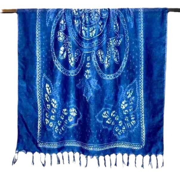 New Yunnan Blue Dyeing Knot Scarf Ethnic Style Tie Dyeing Big Shawl Long Detached Beard Tibetan Blue Artistic Wax Printing Scarf