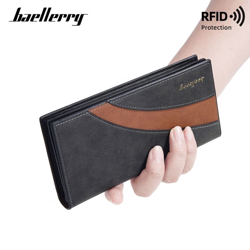 New Men's Long Wallet Baellerry Multi-Card Slot Anti-Theft Money Clip Color-Block Business Men's Ticket Holder
