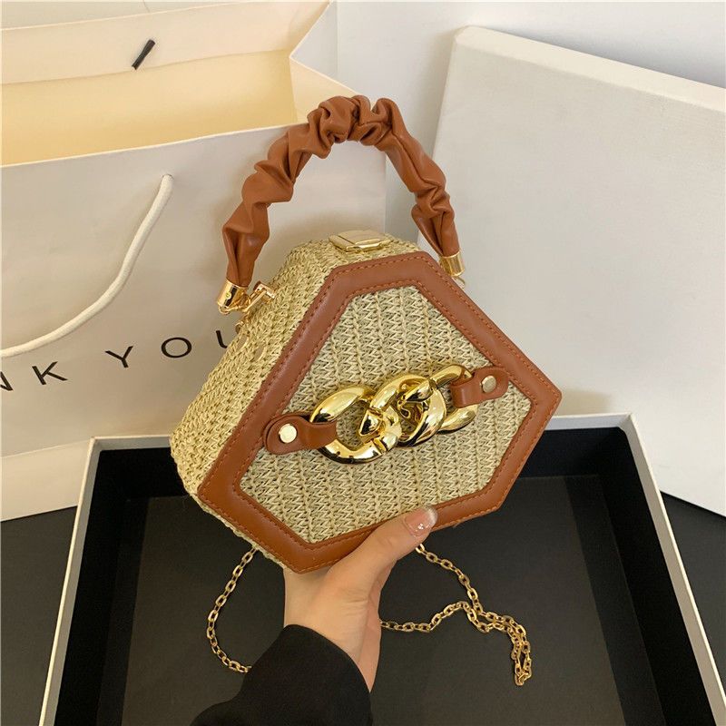 New niche design handbag straw woven personalized crossbody bag chain high aesthetic value diagonal cross ins style bag