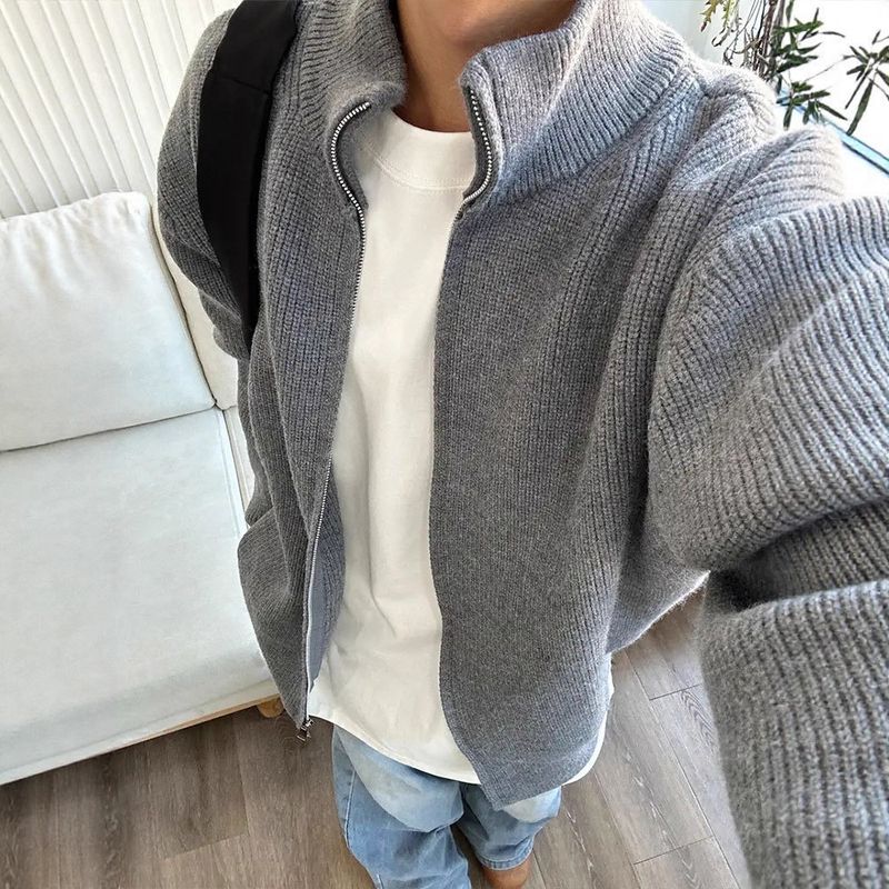 New Zipper Cardigan Stand Collar Sweater Men's Autumn Loose Lazy Style Knitted American Style Jacket