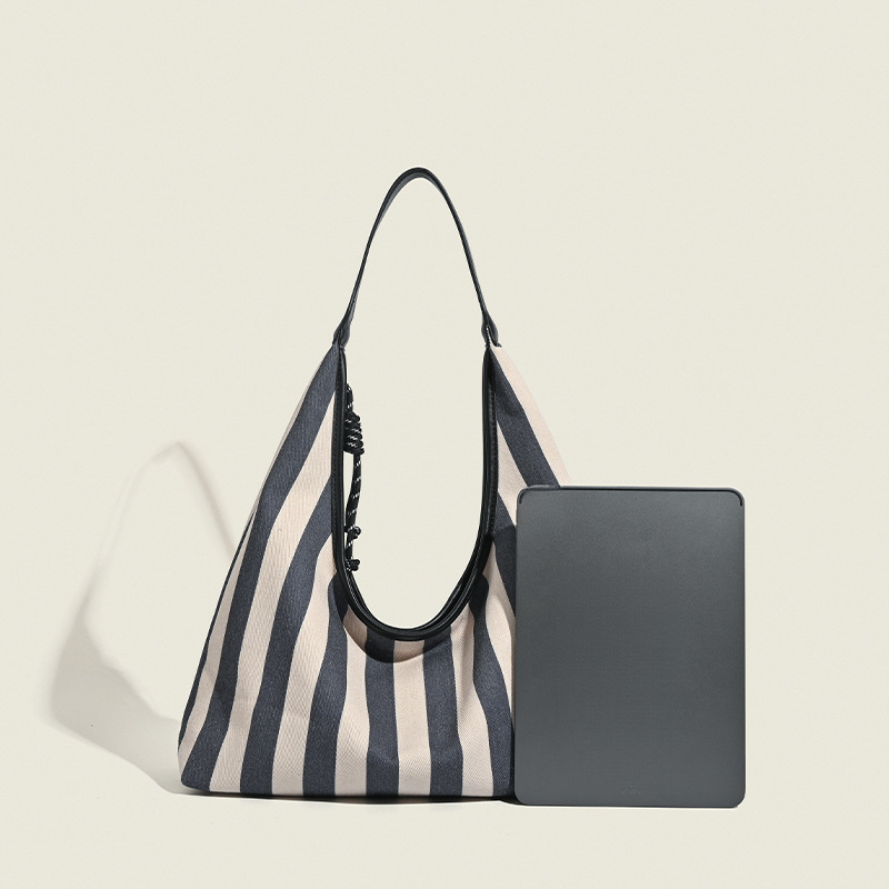 Niche Relaxed Canvas Striped Bag Fashion Underarm Bag Student Commuter Large Capacity Tote Bag Shoulder Bag