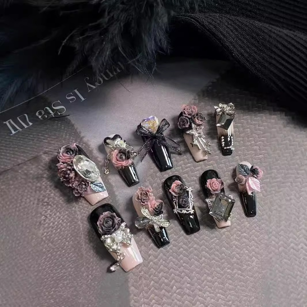Original Art Dark Yabi Style Niche Hot Girl Castle Beauty Wearable Finished Nail Stickers Christmas