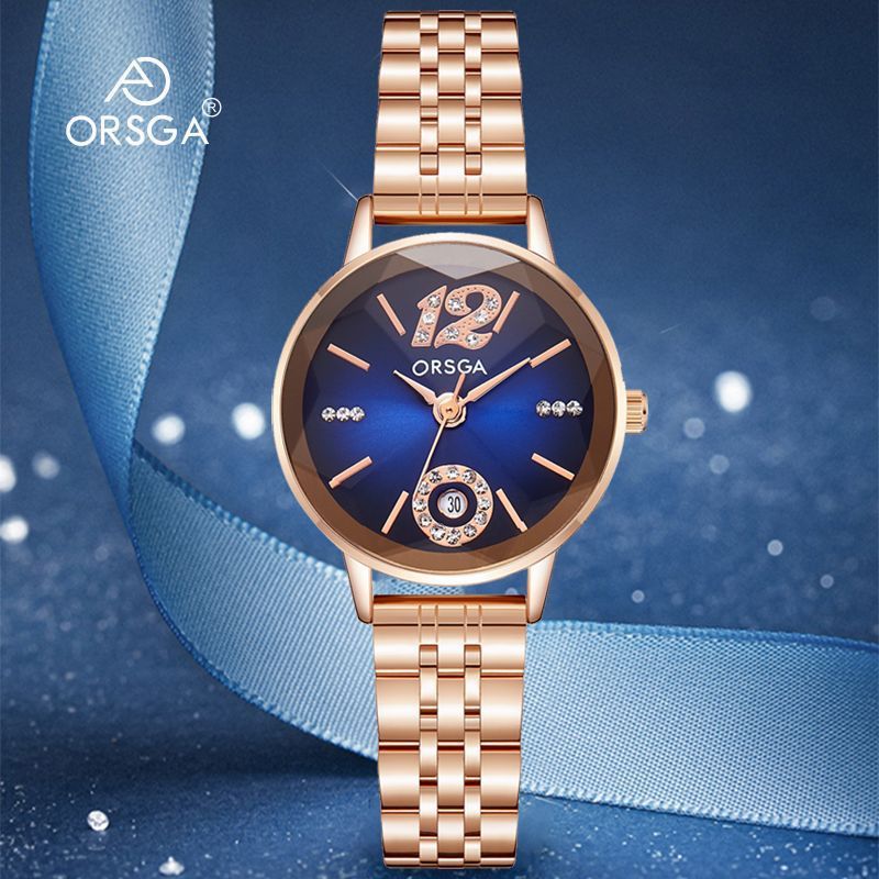ORSGA Fashion Diamond-Studded Calendar Women's Waterproof Live Stream Prismatic Glass Shiny Light Luxury Quartz Watch