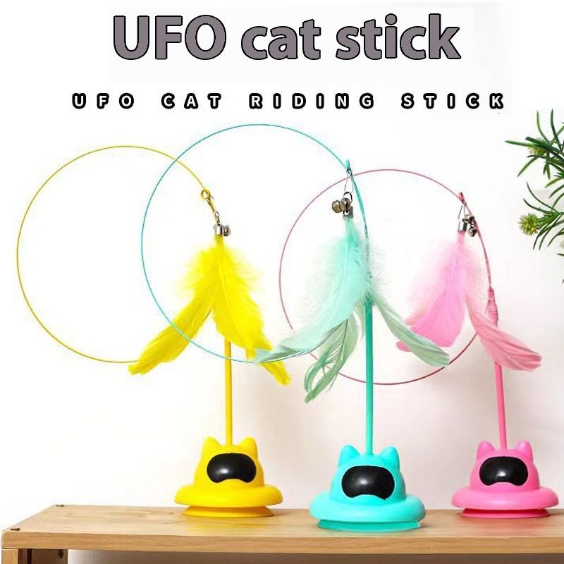 Pet supplies UFO self promotion tool, suction cup, feather cat teaser stick, pet toy