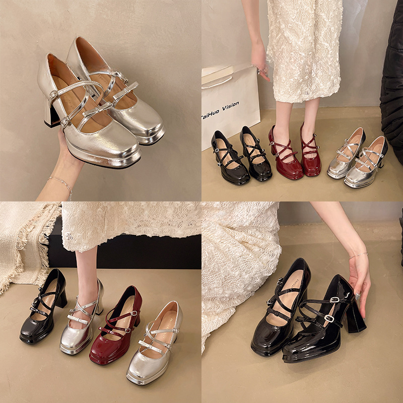 Platform High Heel Silver Mary Jane Women's Shoes, One Strap Square Toe Single Shoes