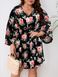 Plus size clothes elegant floral print long sleeved plus size dress for spring and summer vacation, loose lotus leaf sleeves, A line mid length skirt