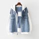 Plus Size Denim Jacket For Women – Oversized Hooded Baseball Style, Comfort Fit (L-4XL, Pink/White)