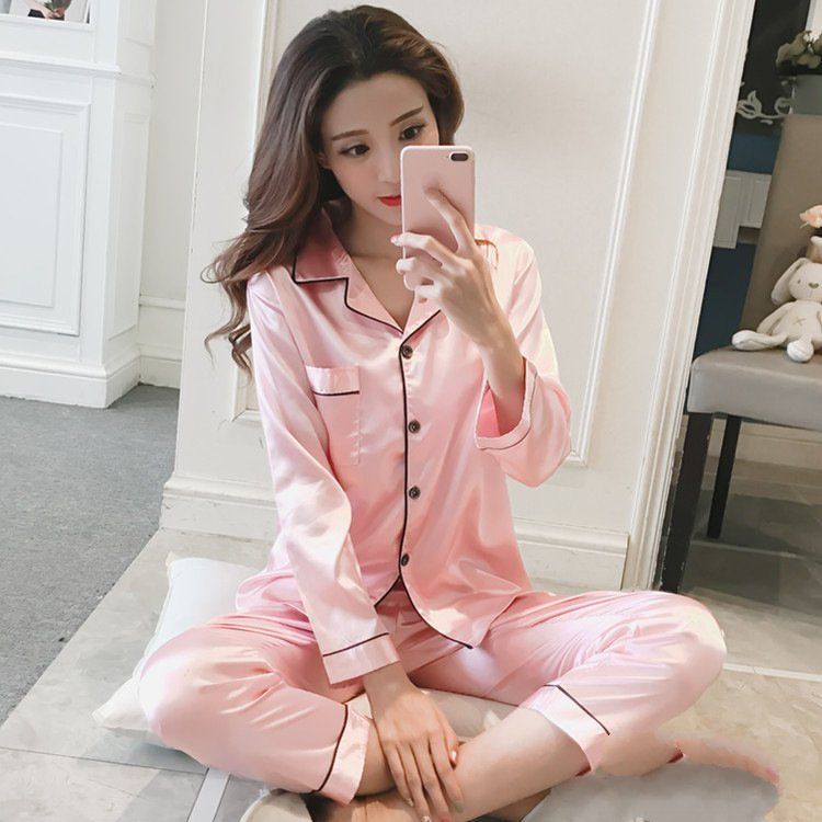 Plus Size Turn-Down Collar Cardigan Silk Pajamas For Chubby Women Spring And Autumn Style Women's Loungewear