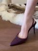 Plus Size Women's 41 To 42 Wide Fat Feet Summer New French Style Purple High Heels Pointed Shoes Closed Toe Mules