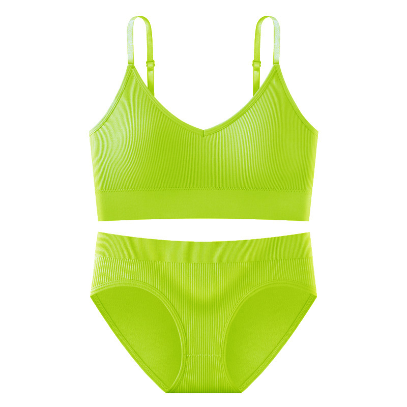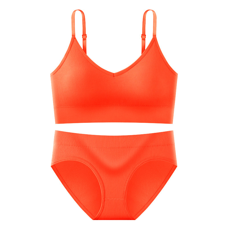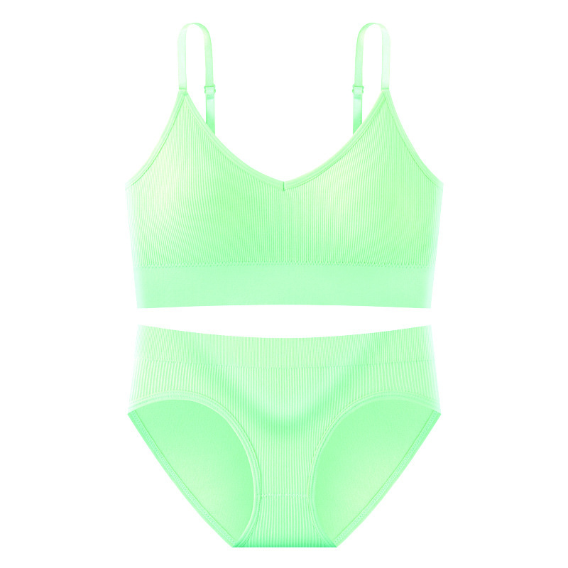 Quality Edition 668 # Traceless Back Sports Bra Triangle Pants Set with Thread Yoga Girls' Underwear