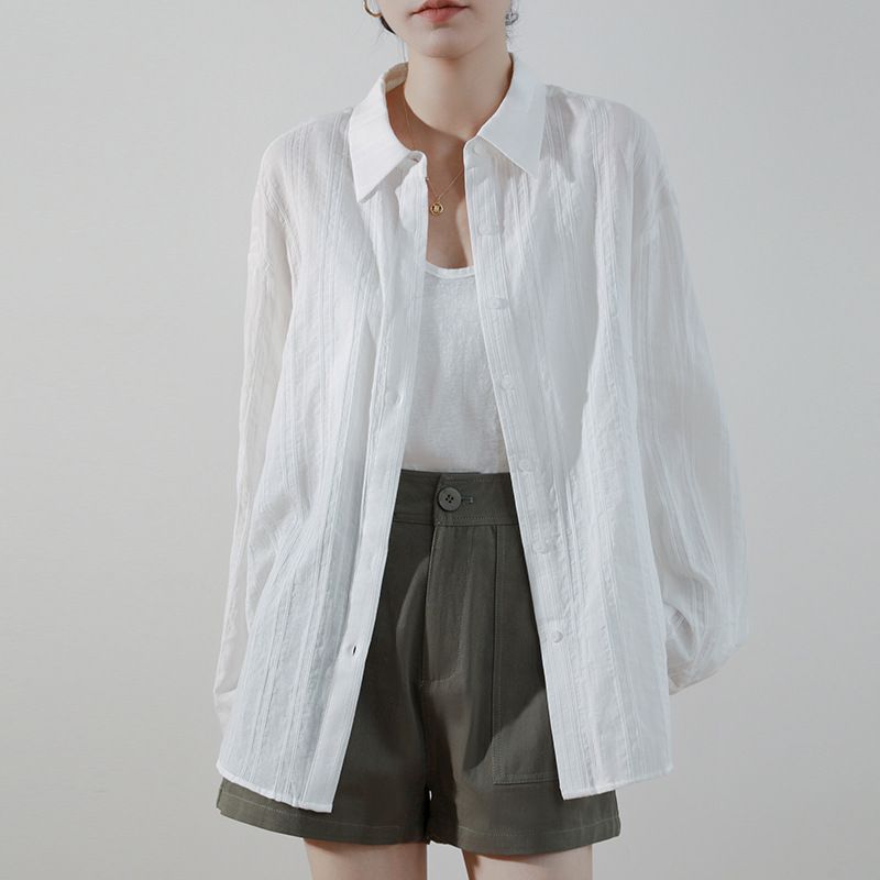 Real Photo Of Song Hye Kyo's Summer Loose, Thin Long-Sleeved Shirt, Sun-Protective Shirt, Vertical Striped White Shirt F