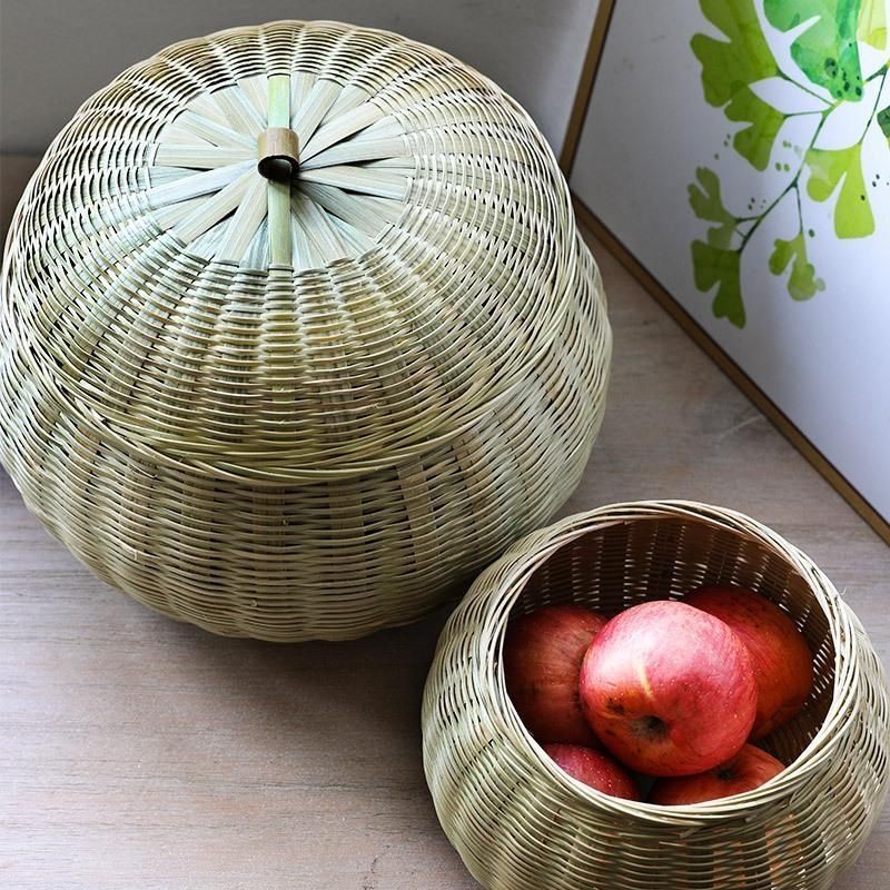 Bamboo Woven Round Egg Basket with Lid, Storage Basket, Storage Box, Bamboo Green Woven Snack Candy Box, Bamboo Basket for Home Use