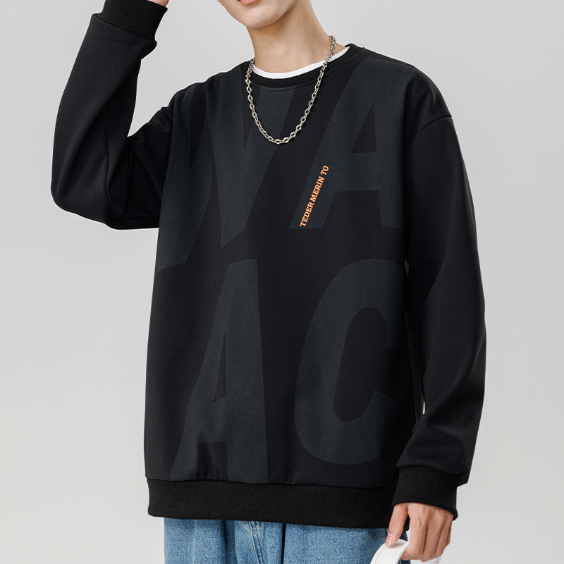 Round neck hoodie men's 2024 autumn and winter new Korean version letter printed casual loose plus size men's top
