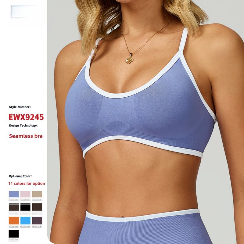 Seamless Color-Block Trim Sports Bra Hollow Back Sports Underwear Running Yoga Sports Bra 9245