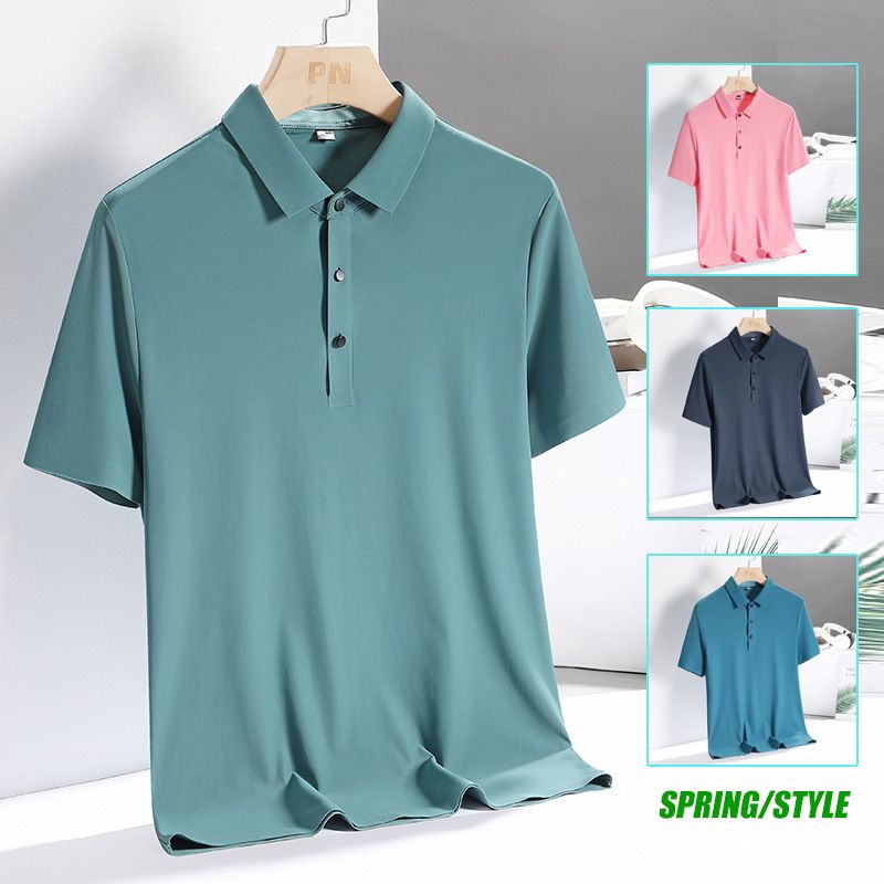Seamless seamless hot pressed ice polo shirt for men's T Korean version men's short sleeved T-shirt for summer new men's team wear print