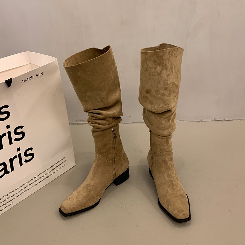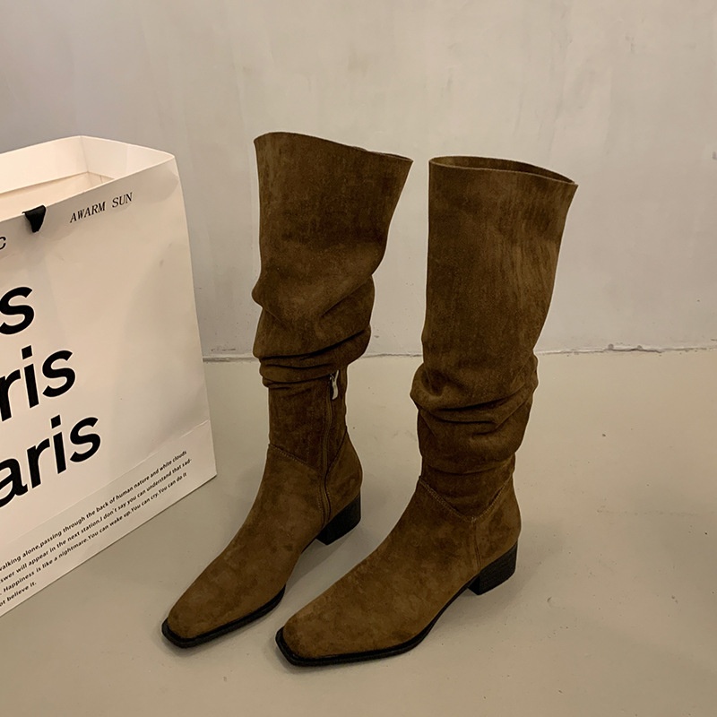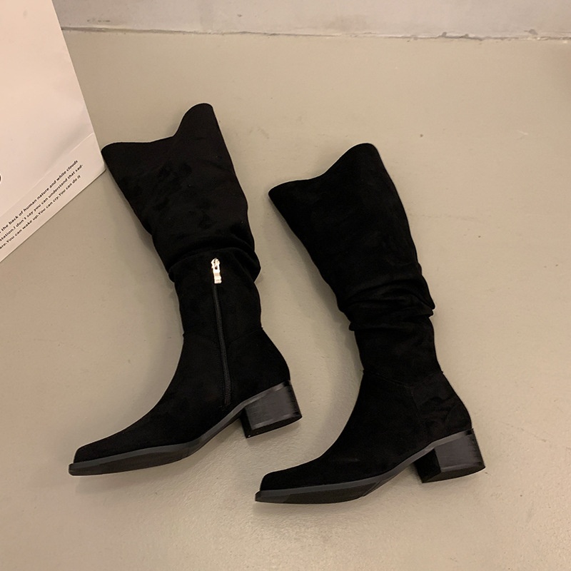 ShoeGlobe ShoeGlobe ShoeGlobe Chunky Heel Pointed Toe Suede Slim Long Women's Shoes 2025 New Autumn Winter Korean Style Over-the-Knee Riding Boots