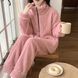 Long hair cut flower sleepwear for women in winter 2023, stand up collar zipper cardigan, long pants with plus size 220