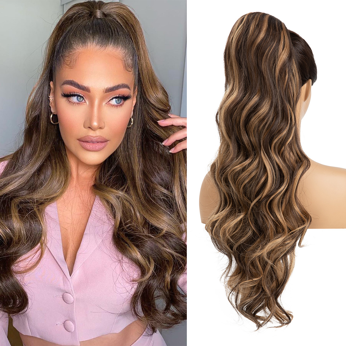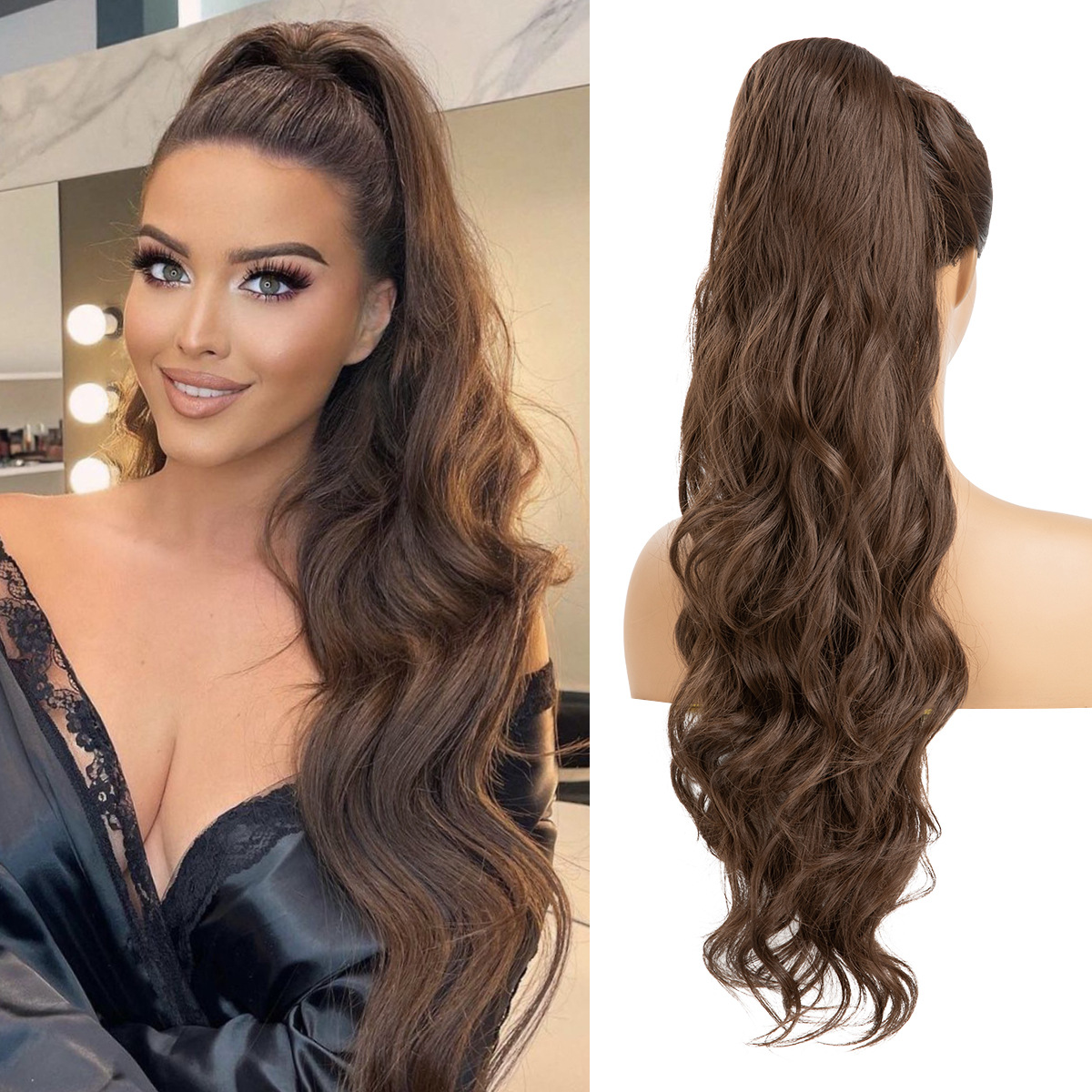 Wig ponytails for women with long curly hair and drawstring style synthetic fiber high ponytails and large wave fake braids