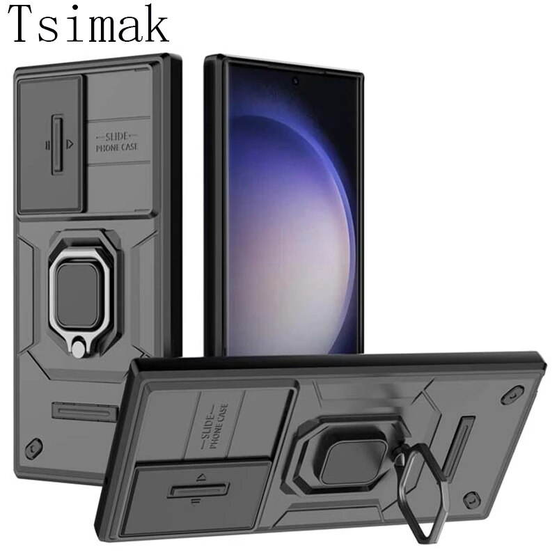 Slide Lens Camera Case For Samsung Galaxy Ultra S23 Plus A04S A13 A14 A24 A34 A54 M34 Shockproof Armor Protect Holder