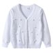 "Soft V-Neck Knit Cardigan For Girls - Breathable Long Sleeve Open Front Sweater With Balloon Details, Perfect For Spring & Summer"
