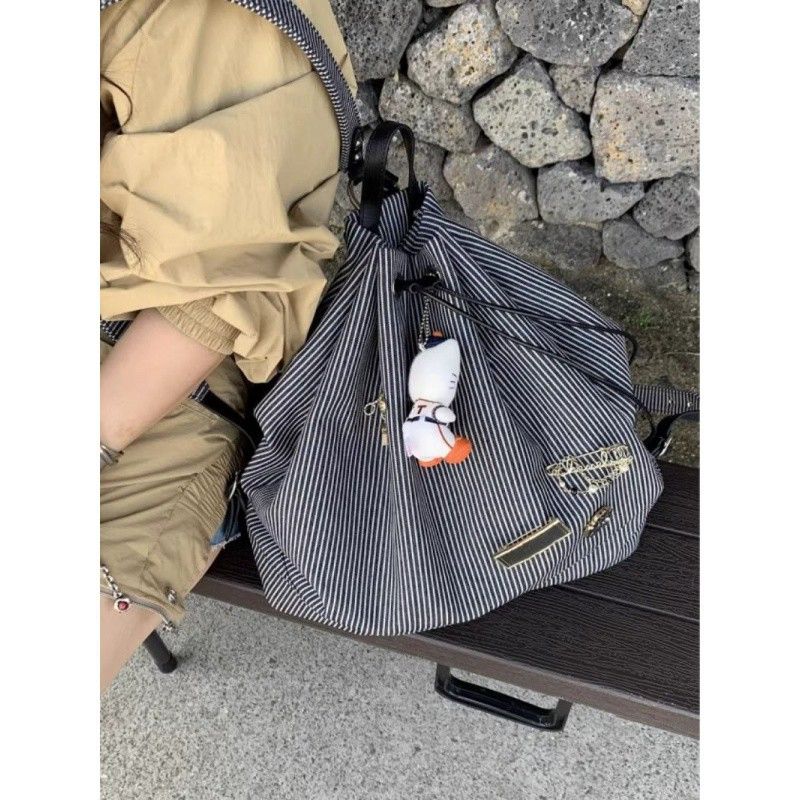 Student leisure backpack for women 2024 new trendy Korean striped canvas bag versatile large capacity outdoor backpack