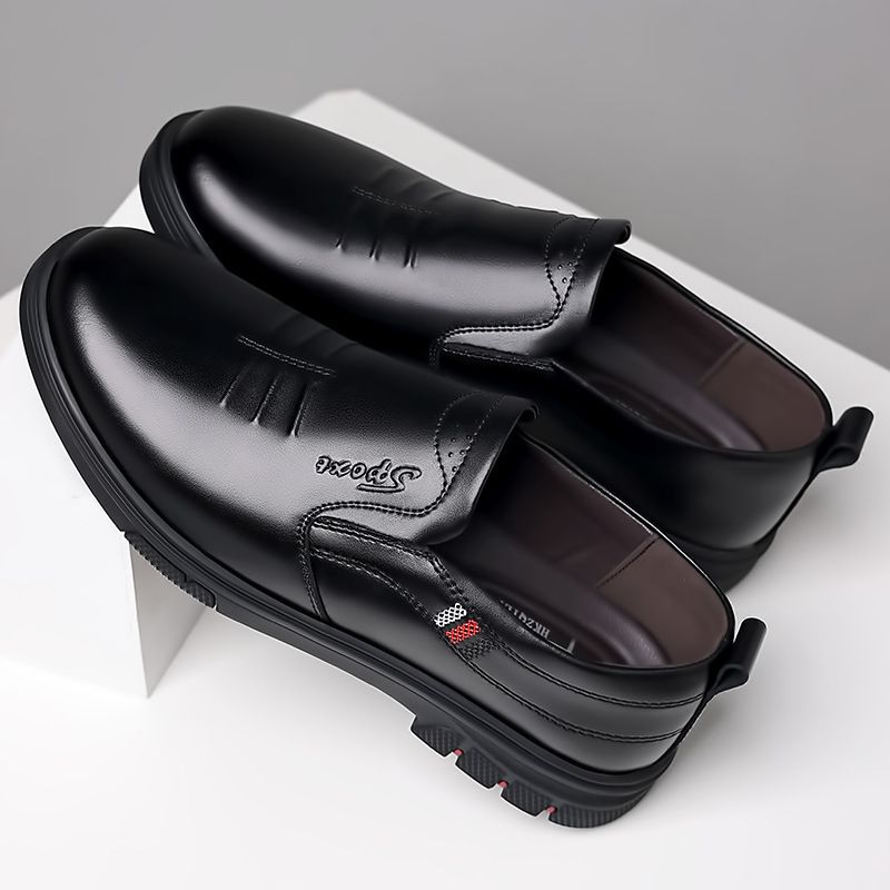 Casual Leather Shoes for Men, Genuine Leather, Breathable, Business Comfortable Work Shoes, Slip-On, Soft Sole, Non-Slip, Middle-Aged and Elderly Dad Shoes