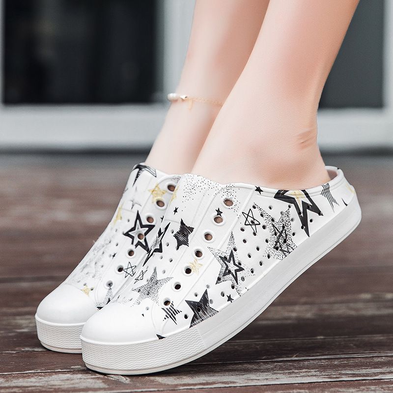 Summer Cave Shoes for Men, Couple, Printed Casual Beach, Hollow Headcut, Cool Half Slippers, Soft Bottom, Breathable, Anti slip, Comfortable