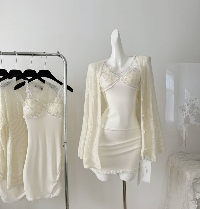 Suuuicee delicate private collection lace patchwork chain design sense knitted camisole sexy pure desire style sho