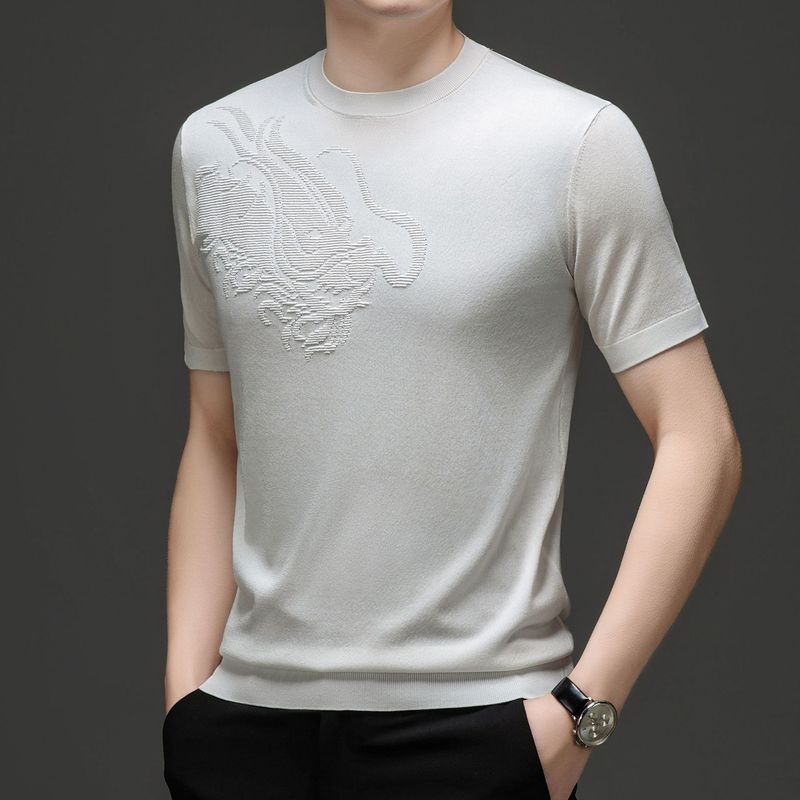 The Year of the Loong New Summer Fashion Trend Men's Lyocell Leading Jacquard Clean Round Neck Knitted Short Sleeve Undercoat