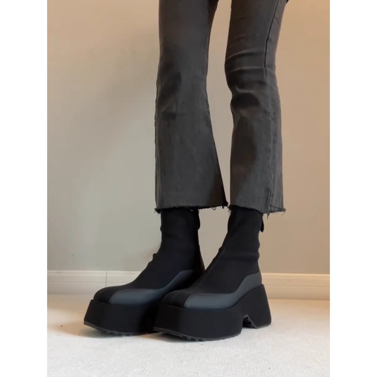 Thick-soled, Height-increasing, Elastic, Form-fitting, Back Zipper Socks For Women. 2025 Fall/Winter New Style. Small Size Black Short Boots.