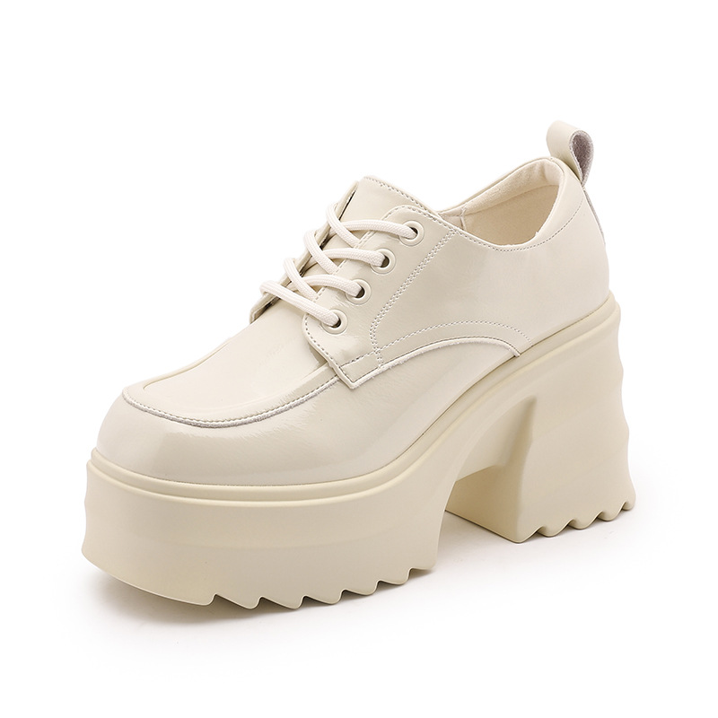Thick soled loafers for women, autumn 2023 new versatile square toe height increasing single shoes, women's lace up