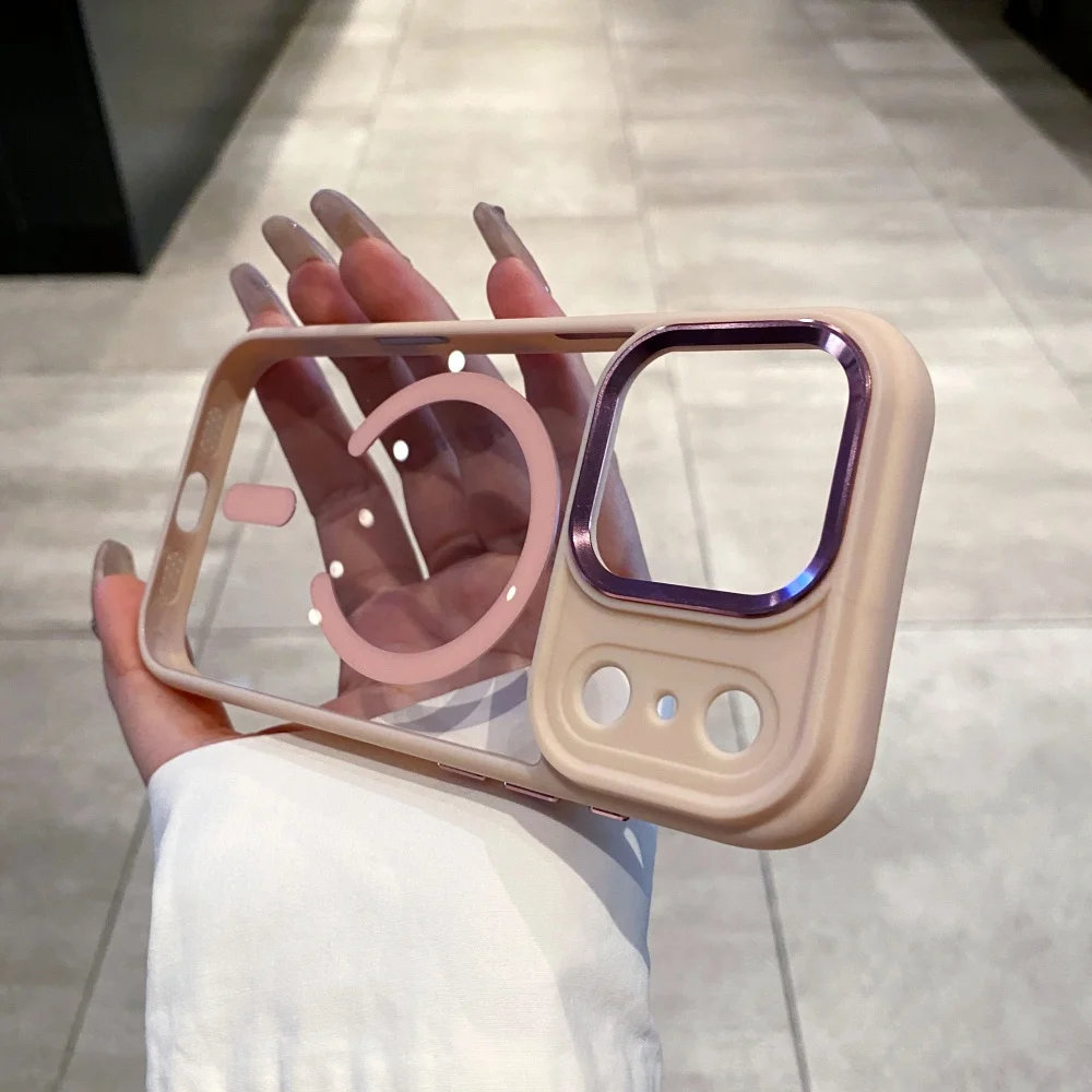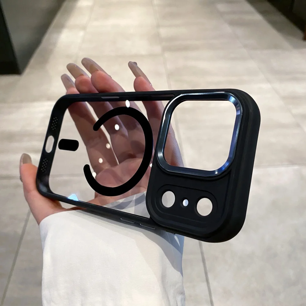 Transparent Armor Case For Iphone 16 15 14 13 Pro Max Plus 17 Air Magnetic Acrylic Metal Lens Shockproof Cover