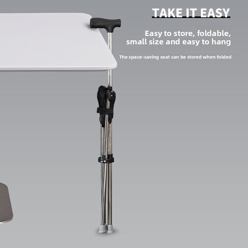 Travel Mobility Aid for Elderly, Folding Cane Stool, Portable Cane Stool, Non-Slip Lightweight Hiking Stick, Multi-Functional