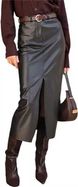 Verve Autumn Winter New Sexy Split Black Commuter Leather High Waist Straight Midi Skirt