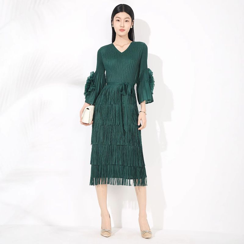 Verve Pleated Long Plus Size 2025 Spring Summer New Base High-end High Fashion Sense Ruffle Sleeve Tassel Midi Dress