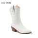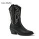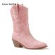 Vintage Pink Cowboy Boots For Women - Pointed Toe Embroidered Mid-Calf Boots With Chunky Heel (Wide Width Available)