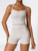 VoleFox Two Pieces Women's Solid Backless Tracksuit Set, Spaghetti Strap Cami Top & High Waist Skinny Shorts, Ladies Sportswear, Summer Outfits 2024