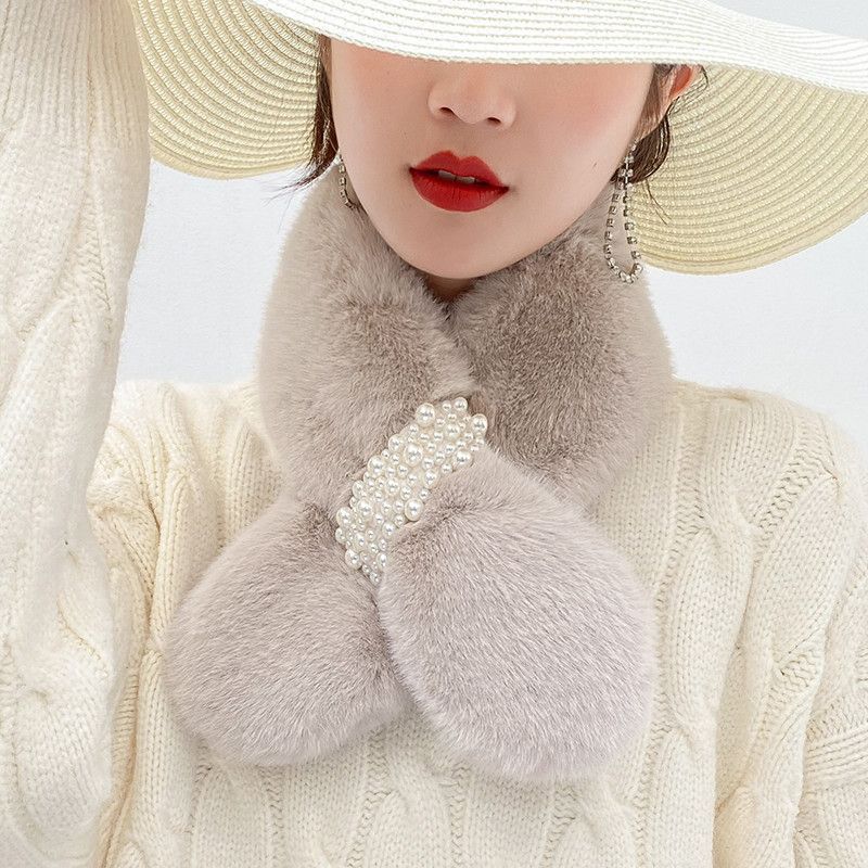 winter Student Mid-length Fashionable Versatile Pearl Scarf, Brake Good-looking, Soft And Warm