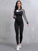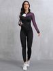 Women'S 2pcs Color Block Athletic Set - High Stretch Fabric, Hooded Jacket & Leggings, Black/White/Teal Patchwork, All-Season Workout Outfit, Gym Clothes|Sporty Look|Versatile Jacket
