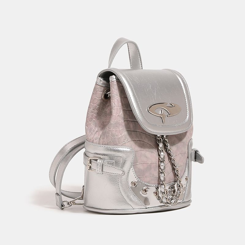 Backpack for women, 2023 autumn and winter new style, trendy and high-end, niche design, large capacity, spicy girl silver outdoor backpack