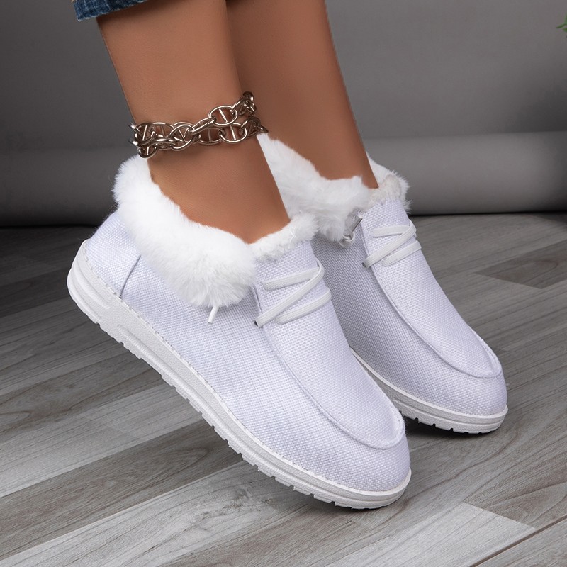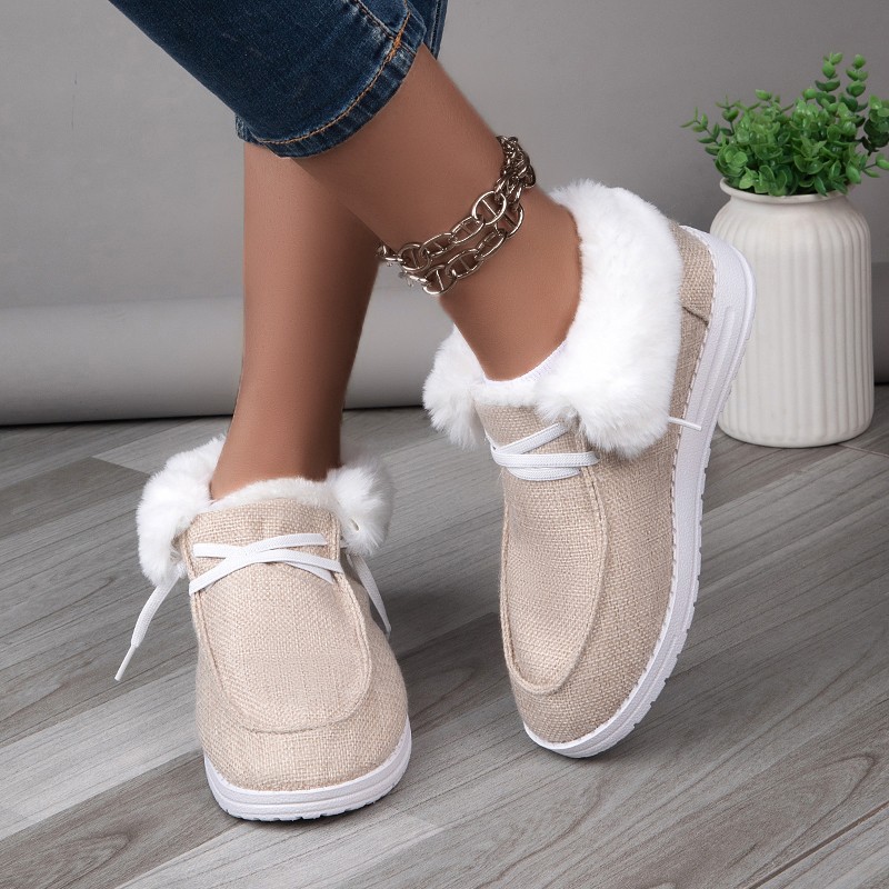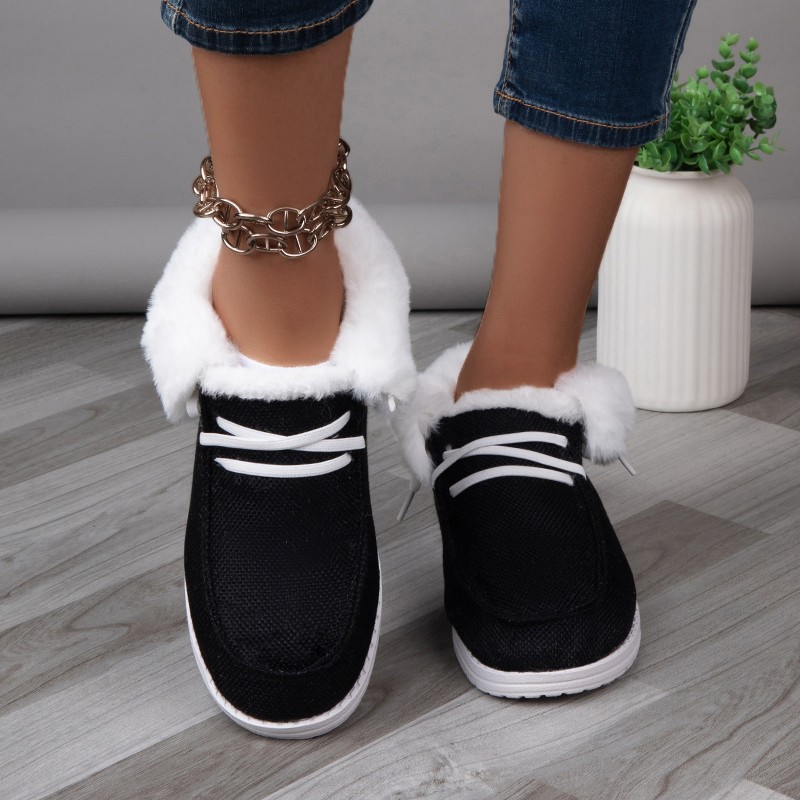 Temu oversized women's shoes for autumn and winter, new round toe lace up cotton boots, flat bottomed plush and warm women's cotton shoes