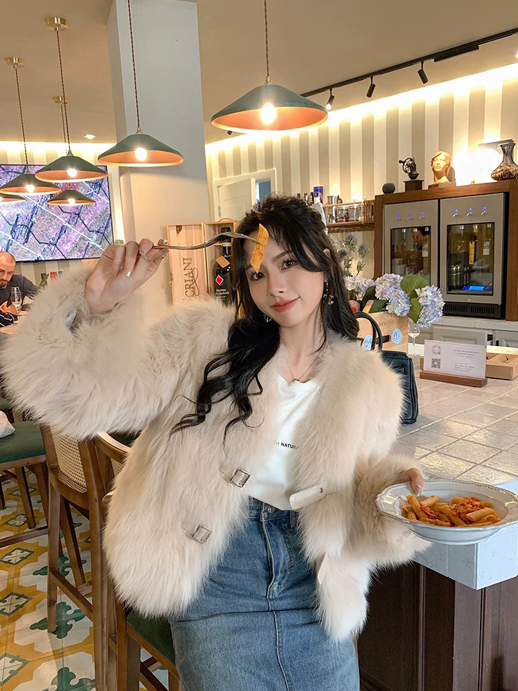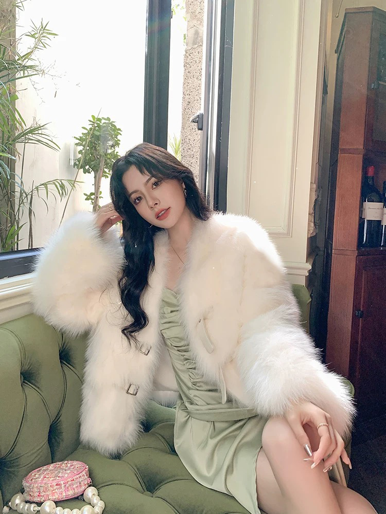 Women's Clothing plush top windbreaker short double breasted leather buckle high end slim environmentally friendly wool warm fur coat