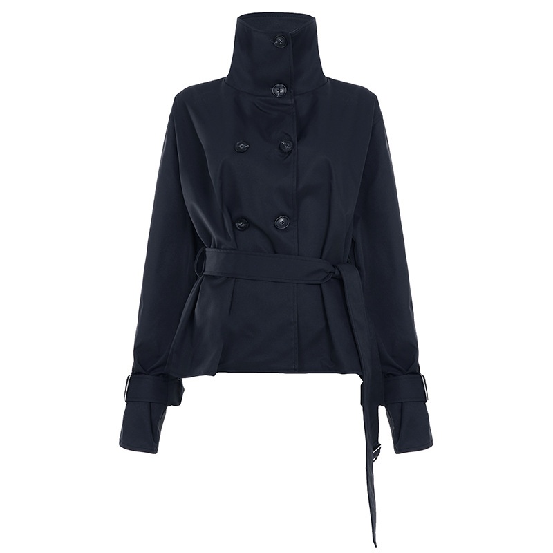 Women's Clothing Women's Street Cool Simple Versatile Tie Waist Slimming Trench Coat Niche Design Button Stand Collar Top For Women