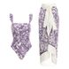 Women's new style waist drawstring hollow purple dragonfly print one-piece swimsuit and wrap skirt suit hot style