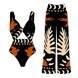 Women's swimsuit retro printed mesh trousers conservative swimsuit bikini