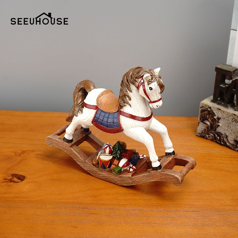 Wooden Horse Resin Craft Christmas Ornament, European Style Realistic Animal Decoration For Home Tree & Room Decor