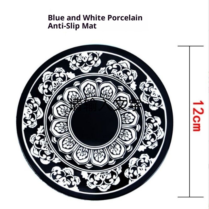 Xiaodeng Xiaodeng Blue And White Porcelain Round Lotus Camellia Anti-Slip Car Perfume Seat Ornament Non-Slip Silicone Mat