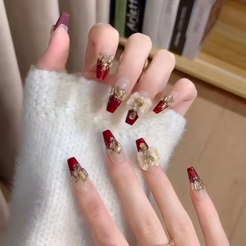 New Year's Red French Nail Wearing Nail 2024 New Wearing Nail Patch Butterfly Nail Patch